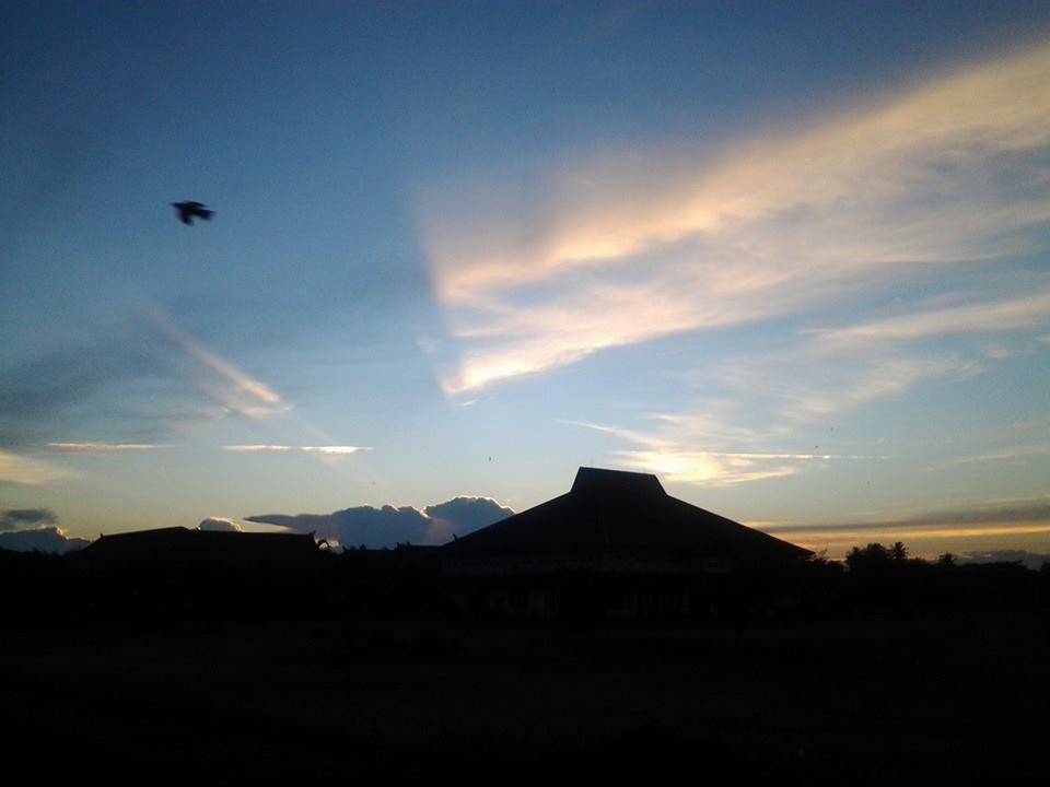 Atau sesaat sebelum matahari terbit tadi pagi. Langit sudah sedikit berubah dari hitam menjadi biru. Segumpal awan tipis berwarna hitam dengan outline berwarna biru tua. Matahari masih agak jauh dari horizon. Cahayanya tipis sekali di batas cakrawala. Udara terasa segar akibat hujan selepas tengah malam hingga menjelang subuh. Begitu sederhana dan biasa, tapi membuat kagum menyadari keberadaannya.