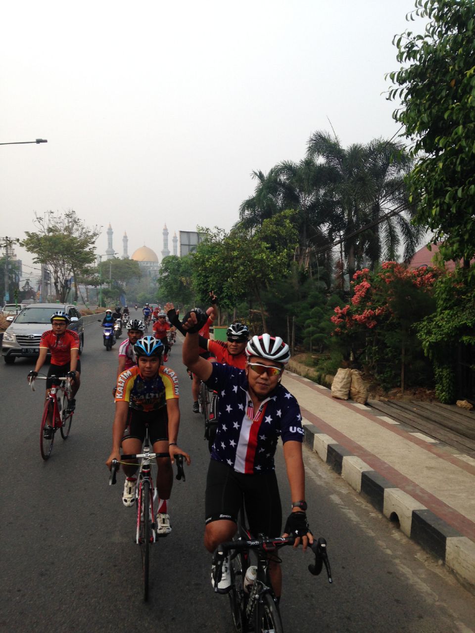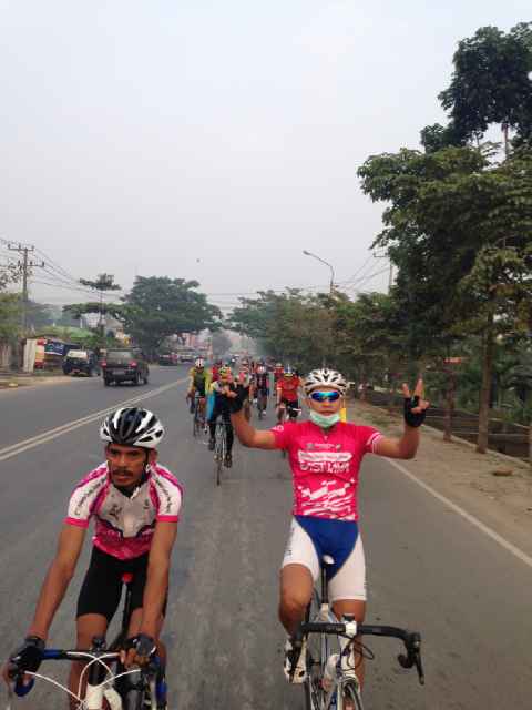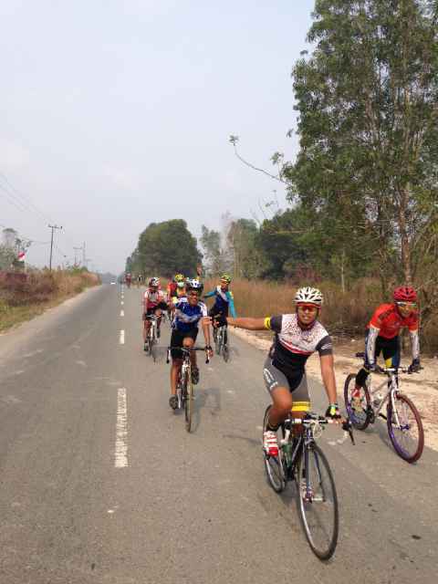 3. Barengan para maestro roadbike Kaltim membuat perjalanan jadi menyenangkan, namun akhirnya harus drop out juga di kilometer 96 setelah berjuang melawan dehidrasi dan hipoglikemi berat karena persiapan kalori yang tidak memadai. Beberapa rekan lainnya juga tumbang karena hawa panas yang luar biasa.